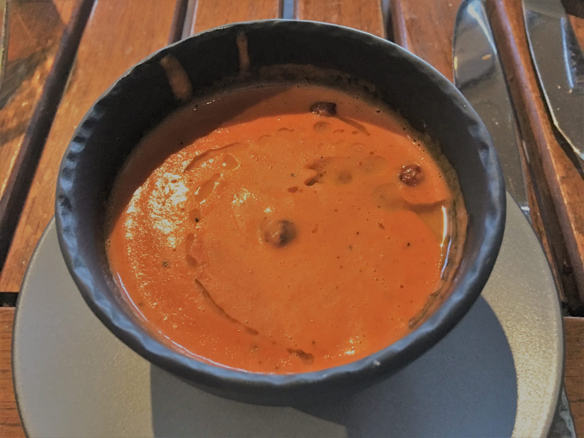 アペタイザ―はトマトスープとムール貝。トマトスープはひとつだけ注文しましたが、2人でシェアするの?とウエイトレスに聞かれたので、YESと答えたら2カップにちゃんと分けて持って来てくれ、なかなか気が利くなと感心。メインはサーモンの上に蟹サラダがのっかったものとバイソンのステーキ、サイドにポテト・グラタン。前半にパンを食べ過ぎたのでメインはすこぶる美味しかったけど完食出来ず半分お持ち帰り。お部屋に冷蔵庫があって助かりました。このレストランの名物デザート、ベイクド・タホ―(過去記事参照下さい)は残念ながらお腹いっぱいで頂けませんでしたのでまた次回のお楽しみに。