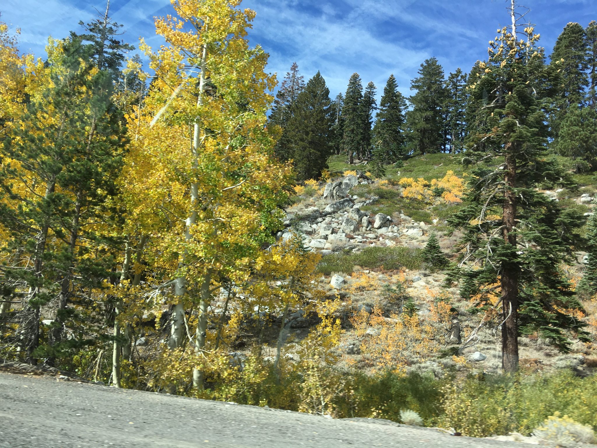 Mt.Rose Hwyを黄葉ドライブしながらホテルへ。(10月上旬撮影)。山越えをするとリノよりも幾分気温が低くなるのでシャキっと澄み切った空気を感じられます。