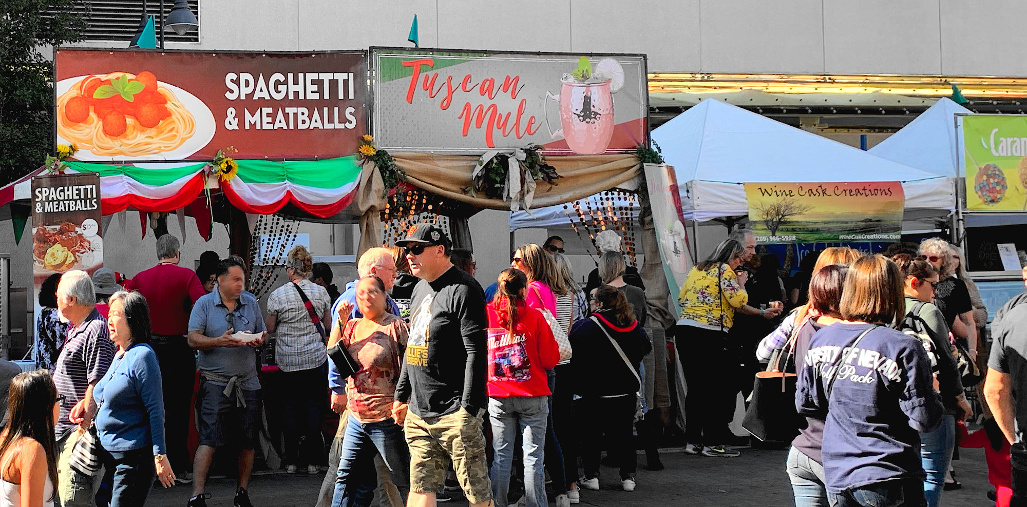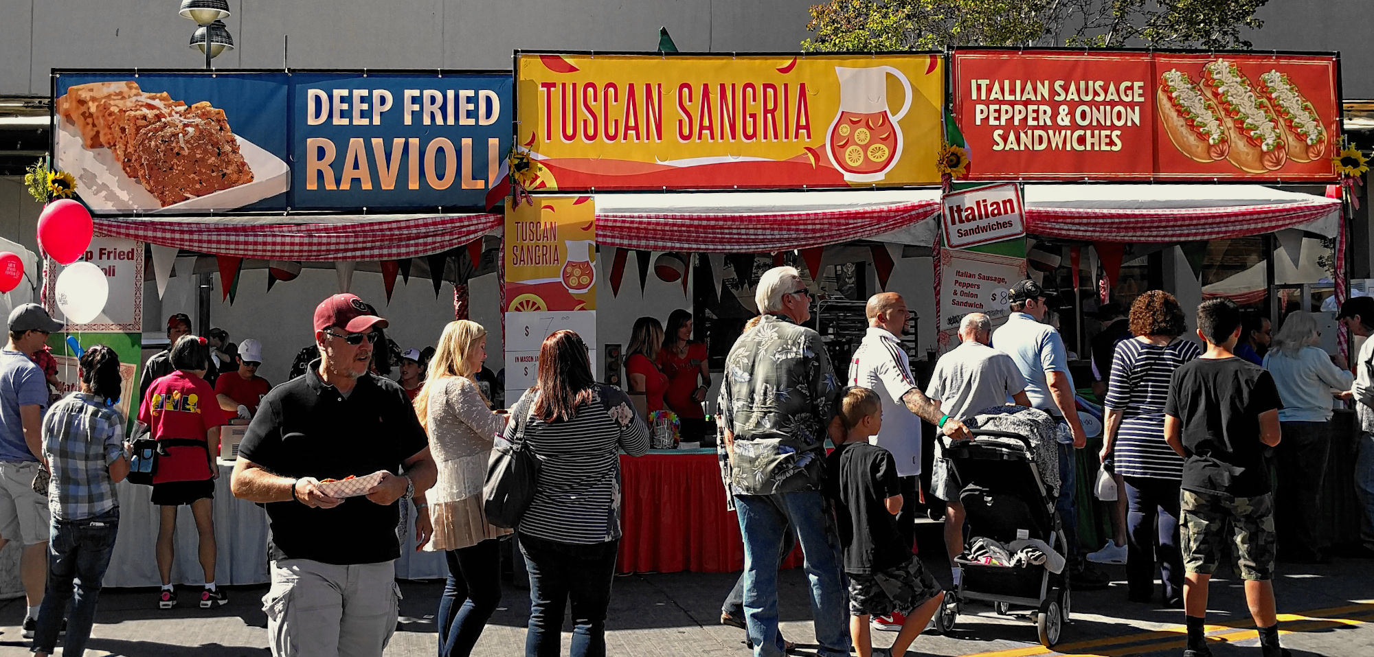 ホームメードのイタリアン・フードの屋台、ぶどう踏み大会、イタリア食材のファーマーズマーケット、イタリアン・ワインのテイスティングが催されます。