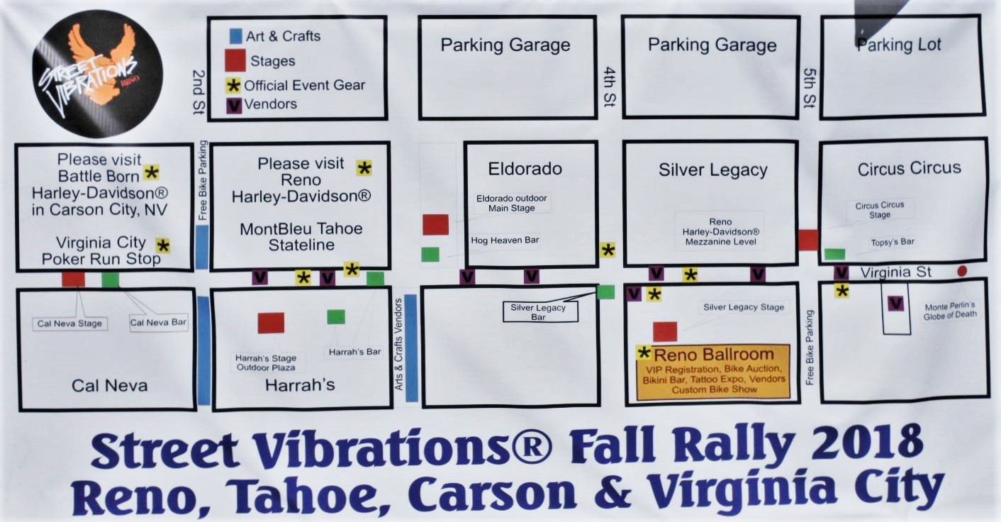 イカしたハーレー・デイビッドソン達が大集合するバイカーの秋の祭典!ストリートバイブレーションズ・フォールラリー。2019年で25周年を迎えます。リノのダウンタウンのバージニア通りはホコ天になり、通りではハーレーのグッズや、レザーベスト、皮手袋、Tシャツなどが出店で販売され、バンド演奏などのイベントが連日繰り広げられます。