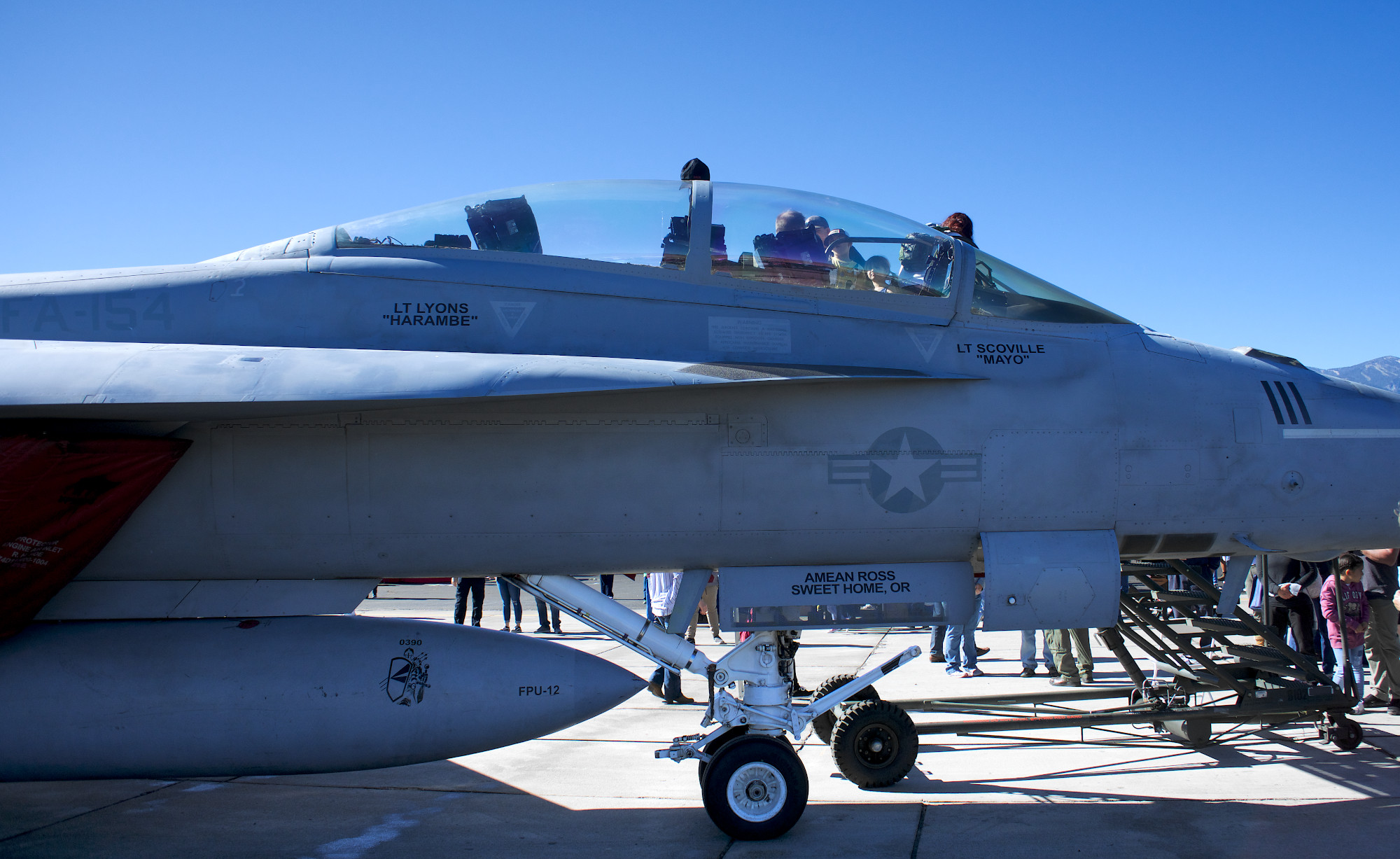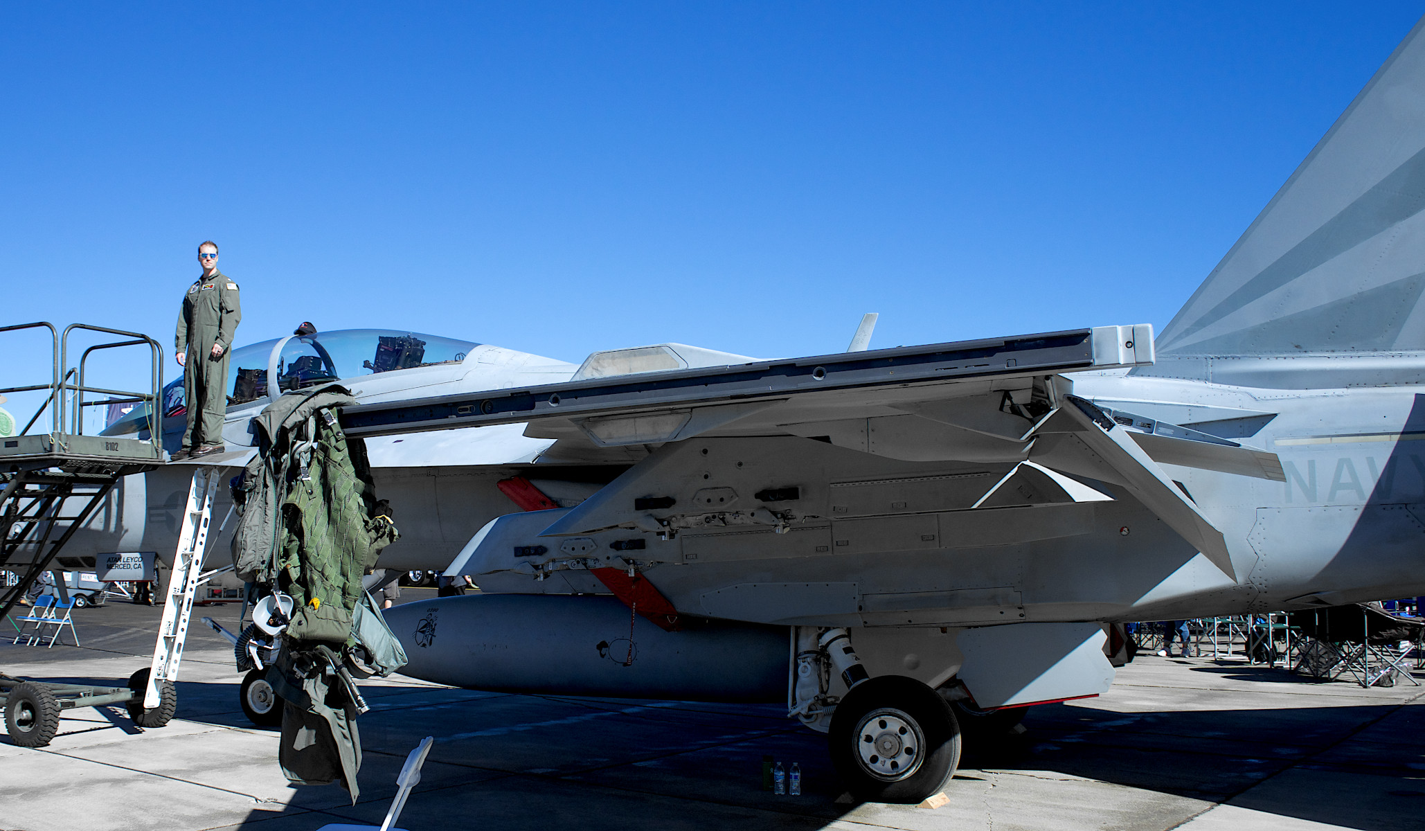 Top Gun Maverickで観られる海軍機としては、F-14A Tomcat ( 1作目でお馴染み。2006年退役)、P-51 Mustang(第二次世界大戦で使用。トム・クルーズはプライベートでも同機所有)、F/A-18E/F Super Hornet(写真下は航空ショーで展示・飛行されていた加州リムーア(Lemoore)NAS所属の複座型F/A-18F)、などが予定されてるようです。F-35Cも冒頭で出ています。